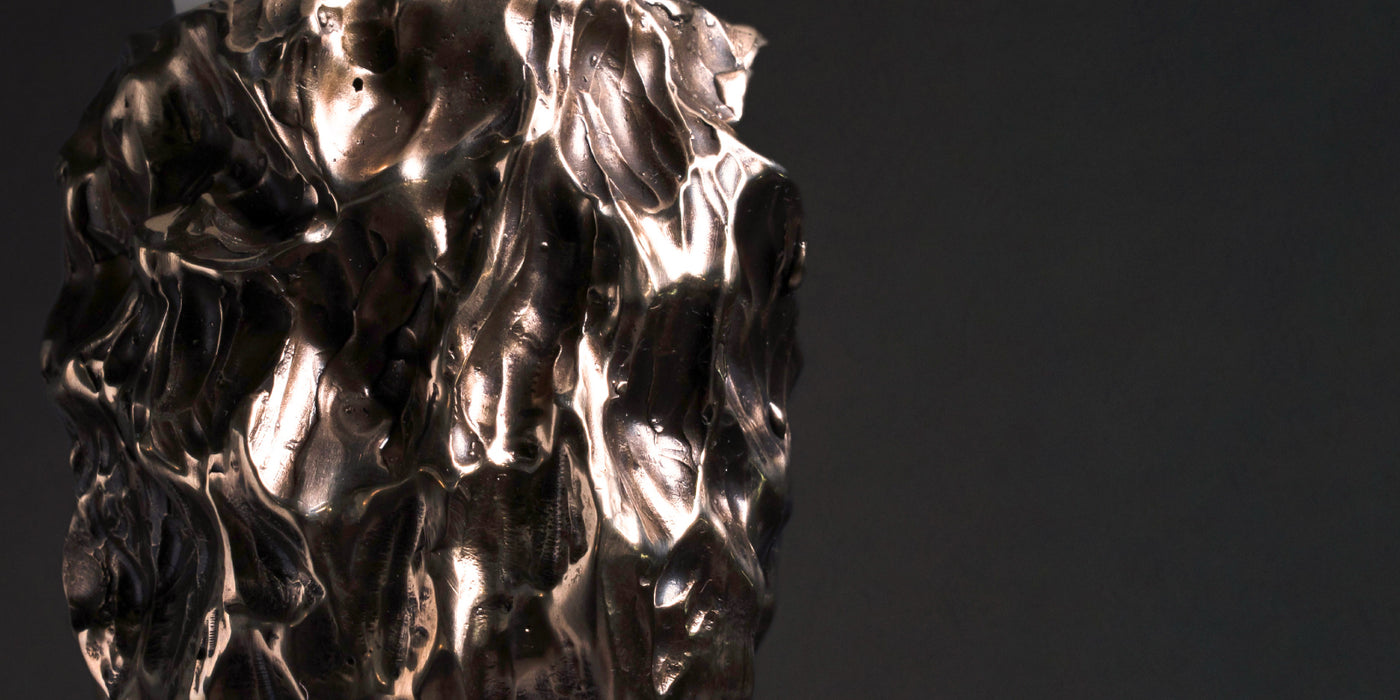 Sa texture singulière, née d’un procédé inspiré de la science-fiction, évoque un dialogue entre formes organiques et esthétiques futuristes.